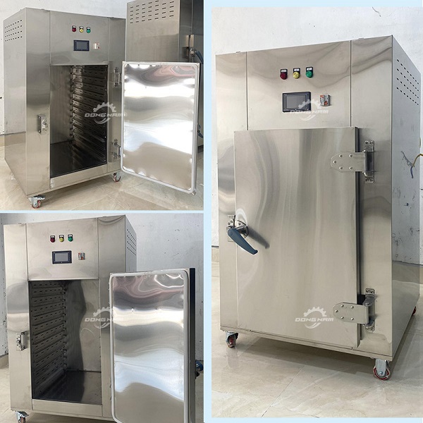 Vật liệu chế tạo: thân vỏ inox201, khay sấy inox304, bảo ôn bông khoáng cách nhiệt chống cháy | |