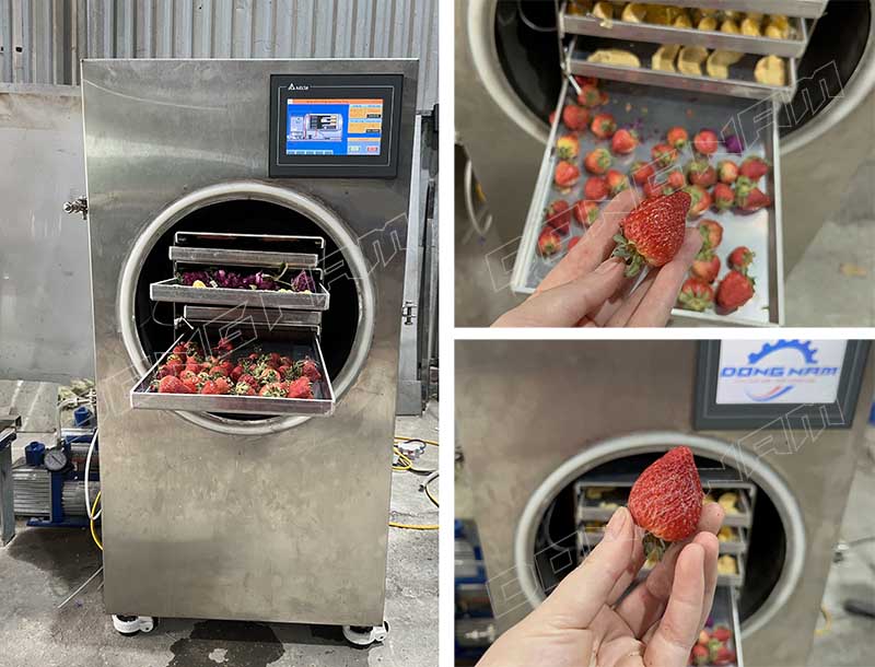 Để sấy được thăng hoa cho chất lượng sản phẩm tốt nhất ngoài do chất lượng máy còn phụ thuộc vào công nghệ sấy thăng hoa, quý khách có thể thấy cùng mẫu dâu tây nhưng sấy thăng hoa bằng máy và công nghệ riêng biệt Đông Nam cho chất lượng thành phẩm khác biệt rõ rệt.