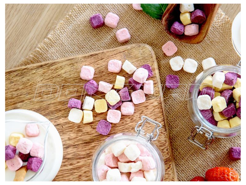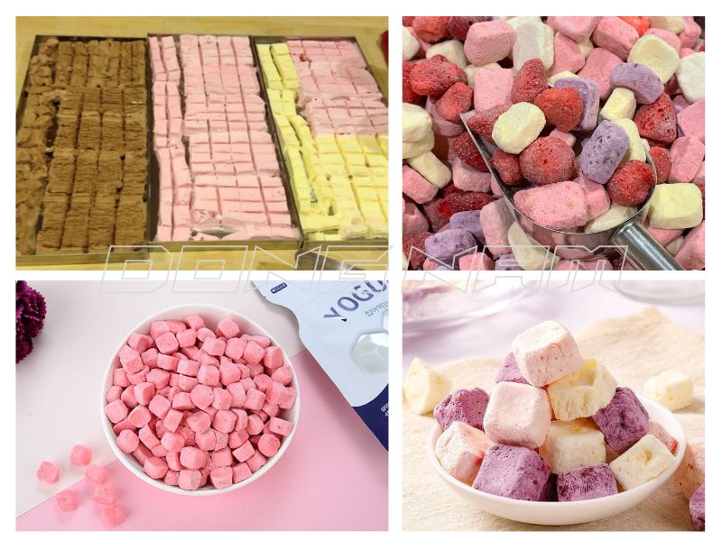 Sữa chua sấy lạnh có nhiều màu sắc dạng viên như kẹo kích thích vị giác